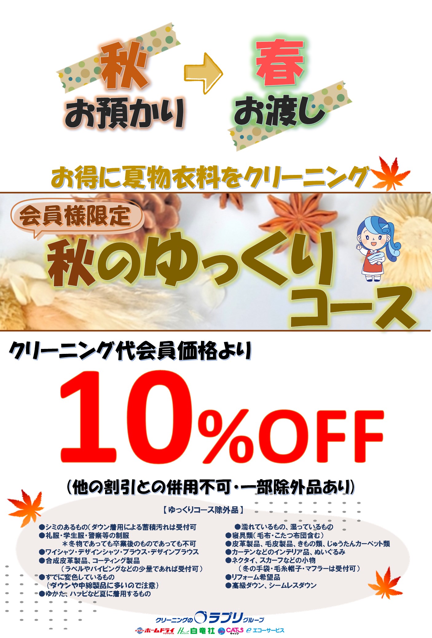 【会員様限定 秋のゆっくりコースのお知らせ】